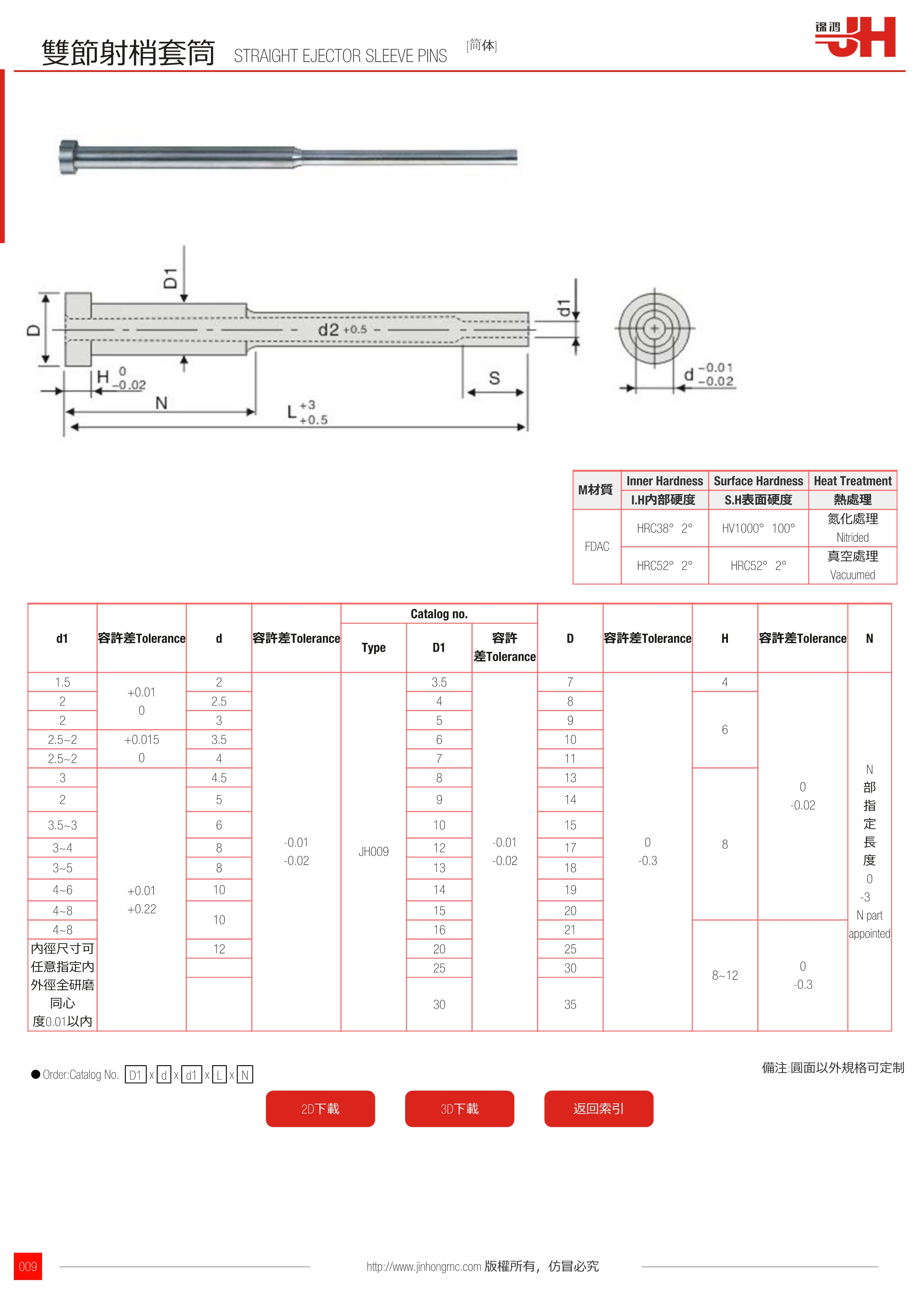 d1 | 容許差Tolerance | d | 容許差Tolerance | Catalog no. | D | 容許差Tolerance | H | 容許差Tolerance | N | ||
