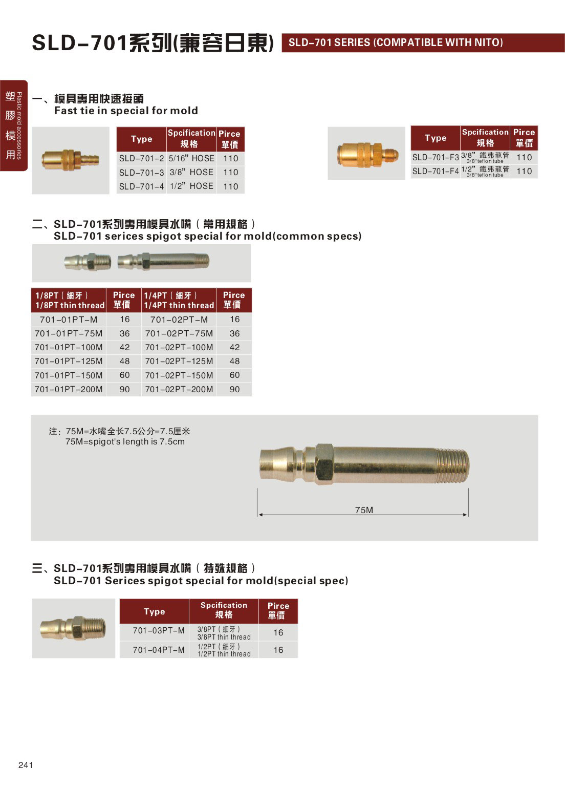訂購:241-SLD-701系列(兼容日東)_專用模具水嘴(特殊規格)
