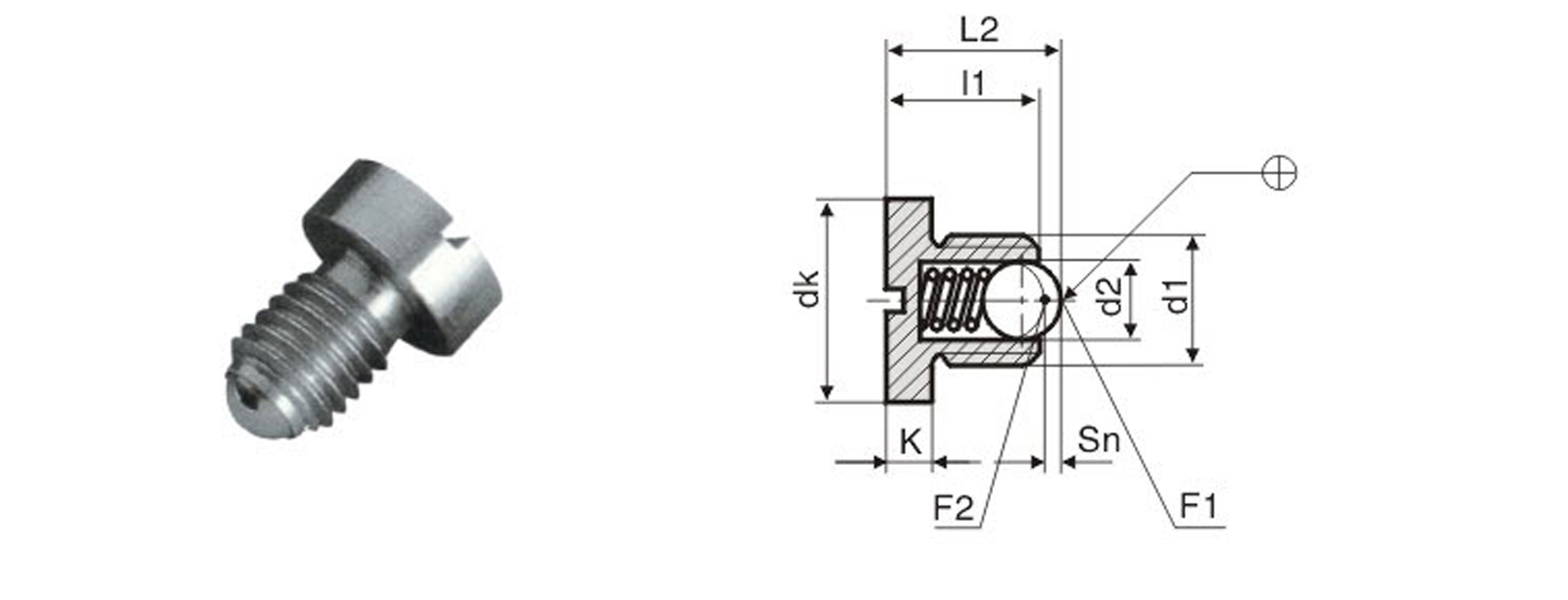 max.℃ | d2 | dk | K | Sn | F1[N] | F2[N] | I2 | d1 | I1 | Nr/No. |