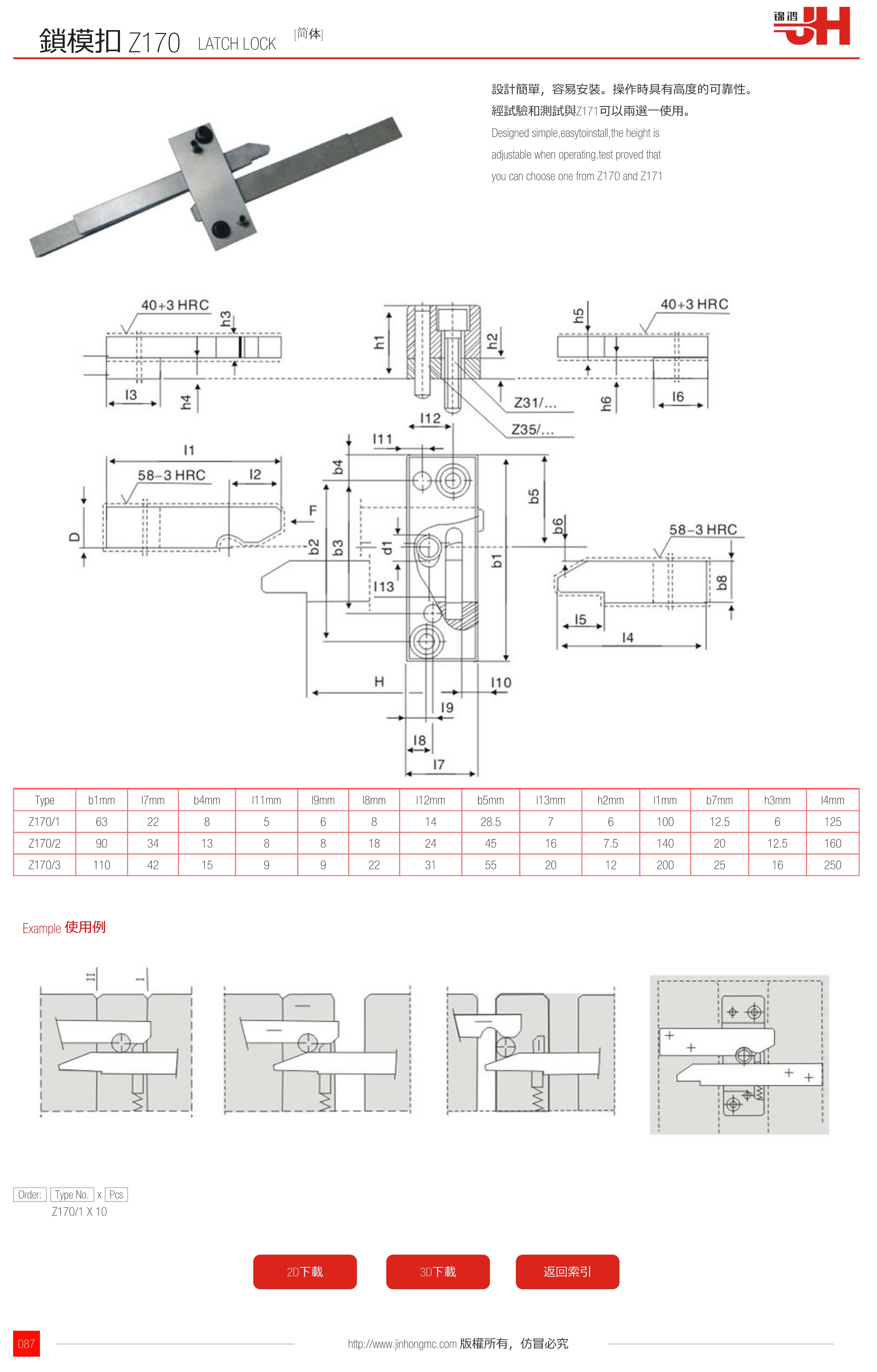 Z170/2 | 90 | 34 | 13 | 8 | 8 | 18 | 24 | 45 | 16 | 7.5 | 140 | 20 | 12.5 | 160 |