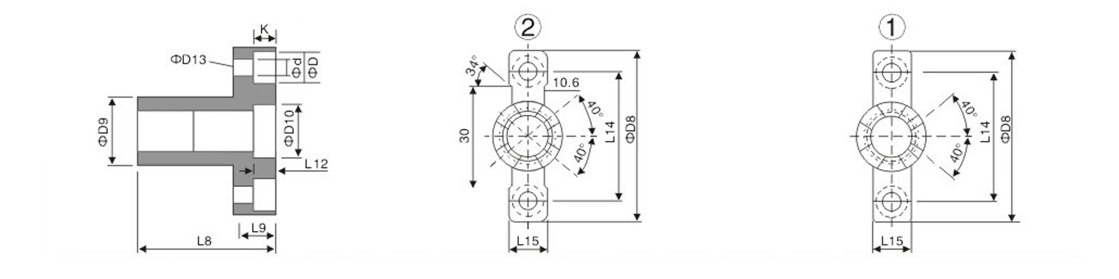 Type | 型號 (+DKL62) | 尺寸 | D8 | D9 | D10 | L8 | L9 | L12 | L14 | L15 | R1 | ¢D13 | |||