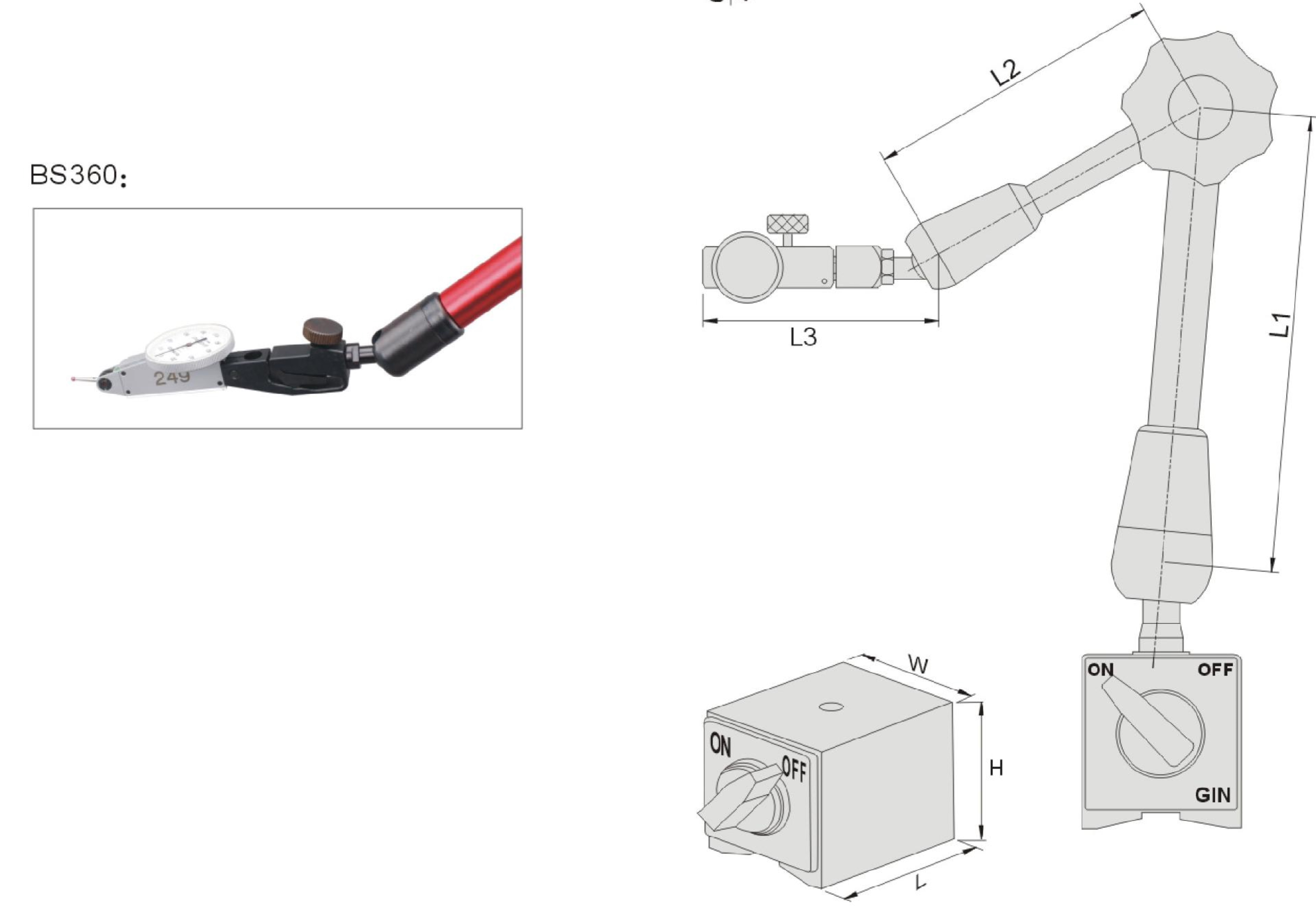 訂購編號 | 型號 | 杠桿規格 | L3 | 磁性座規相 | 吸力(N) | 重量 | |||