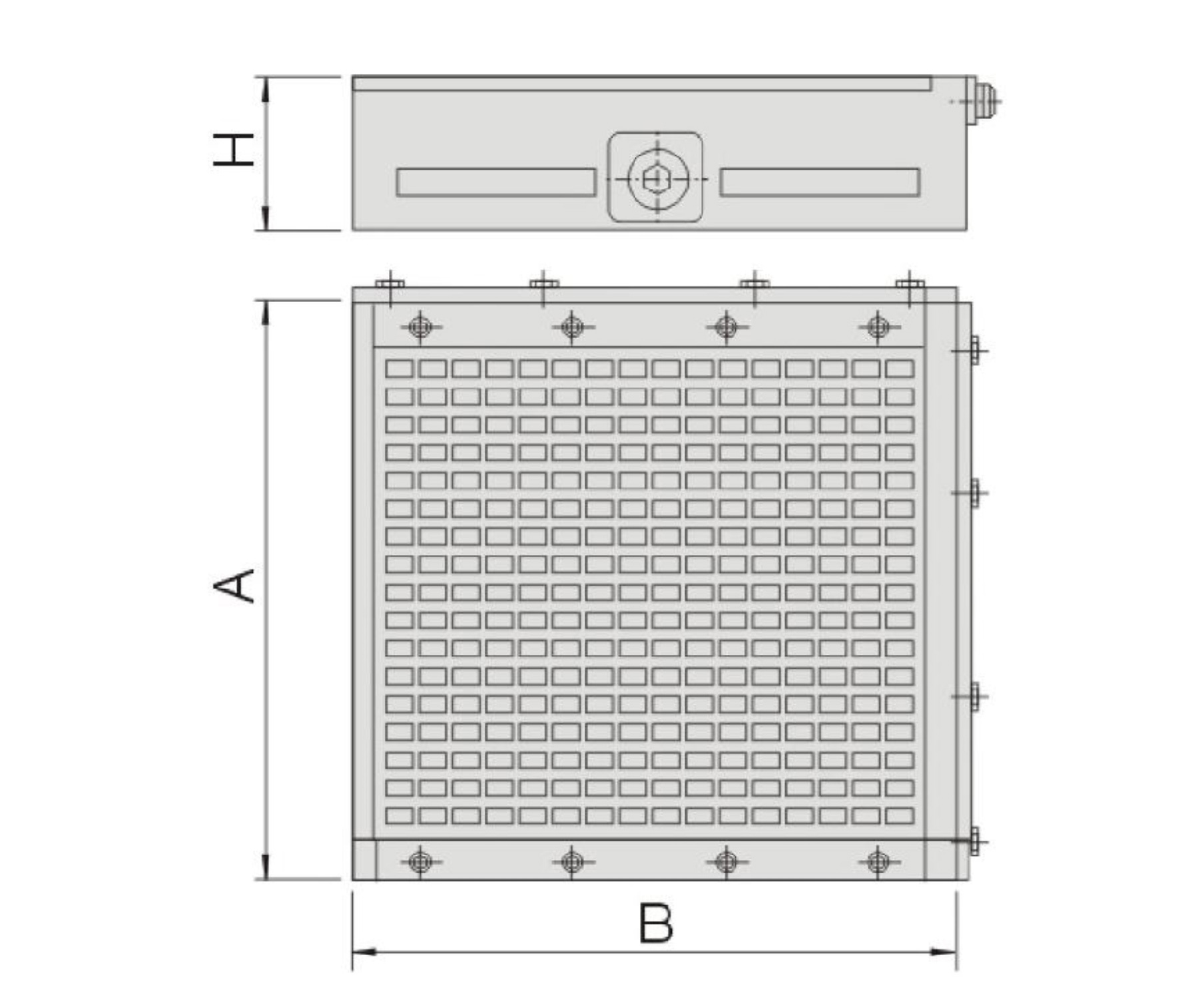 磁極成方陣,磁束互相垂直,密集交織,均勻滲透到工件底部,較淺而磁路密集.可強力的吸持。 2mm以上薄闆進行銑削加工。