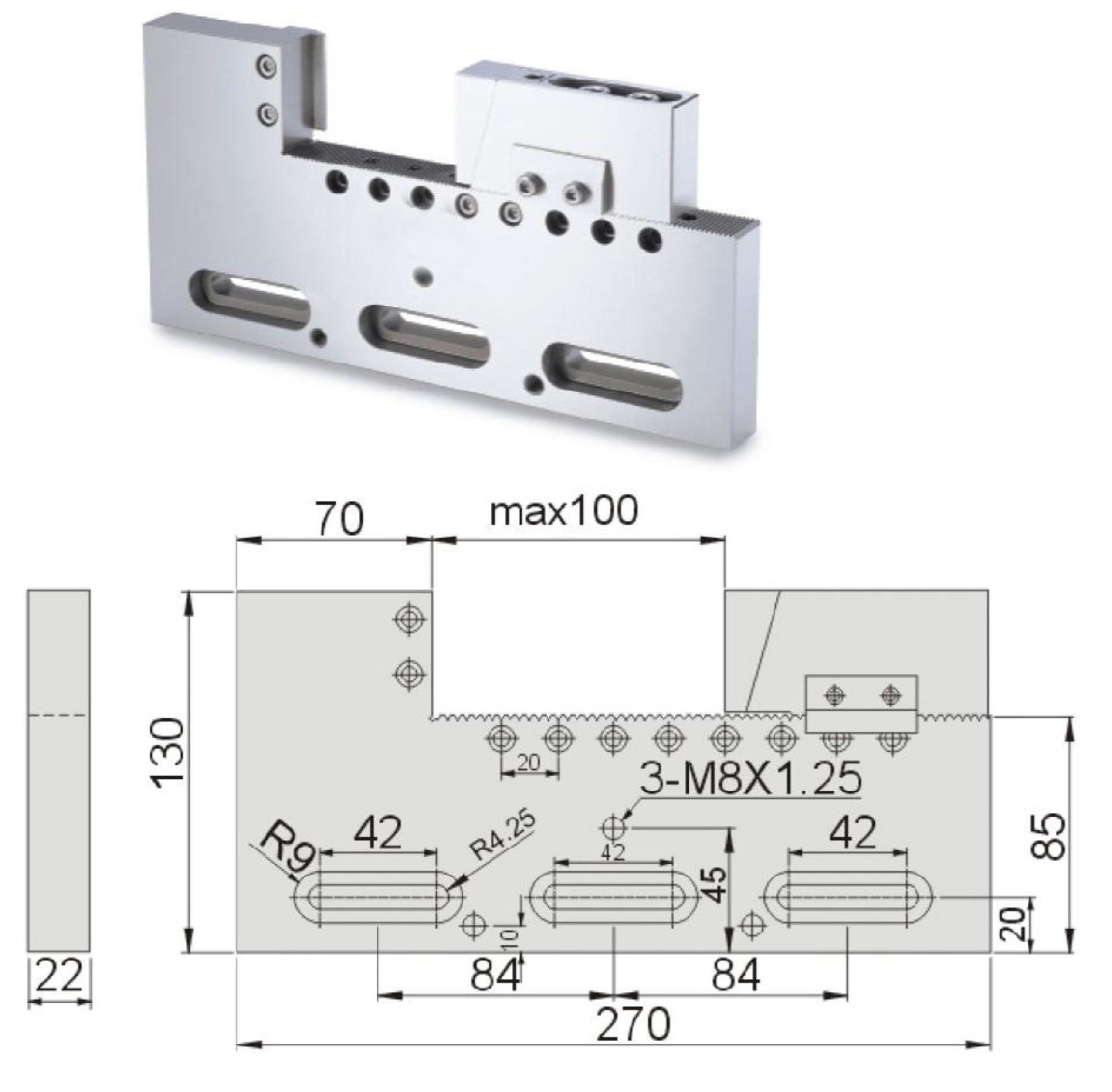 鉗口采用45度下鎖構造,不會出現工件上浮的現象。
