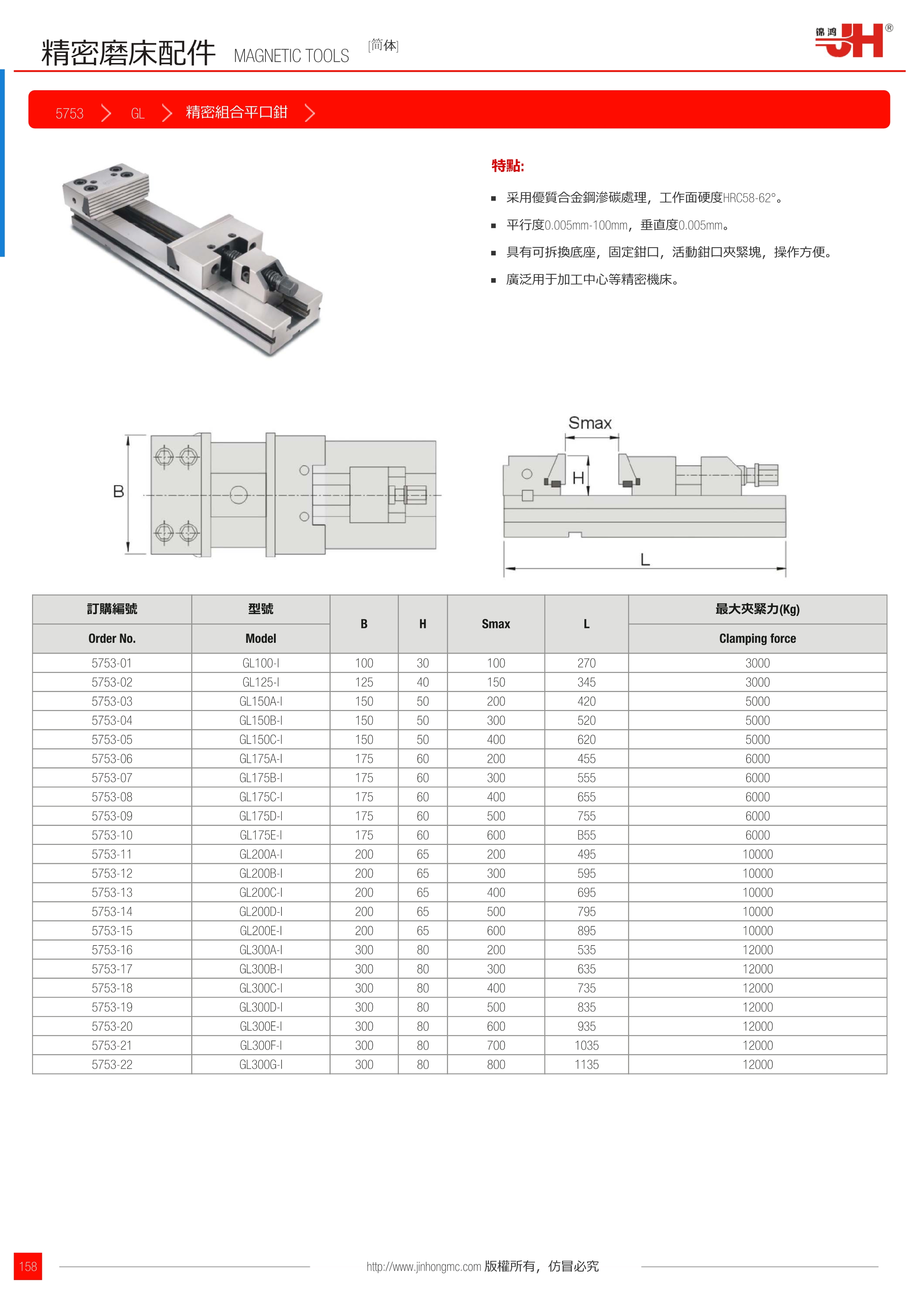 訂購編號 | 型號 | B | H | Smax | L | 最大夾緊力(Kg) |