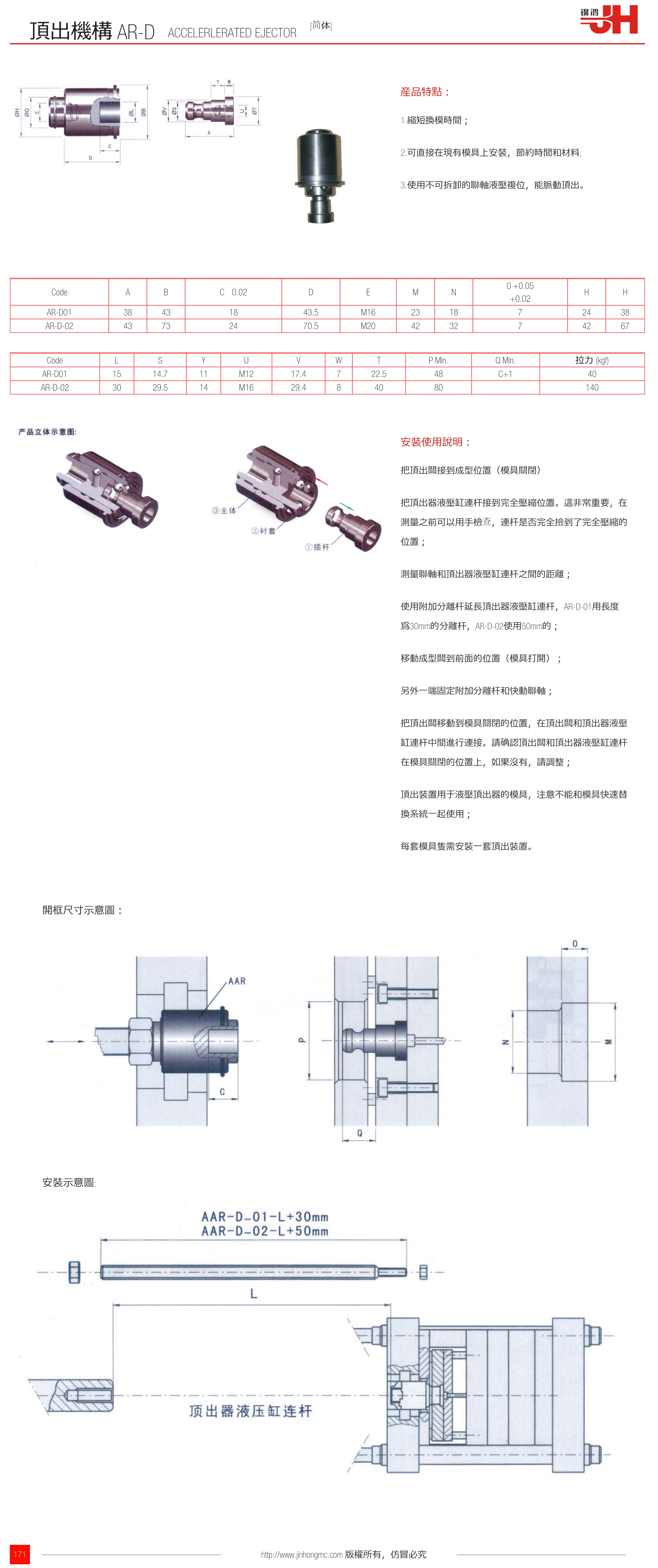 使用附加分離桿延長頂出器液壓缸連桿,AR-D-01用長度為30mm的分離桿,AR-D-02使用50mm的;