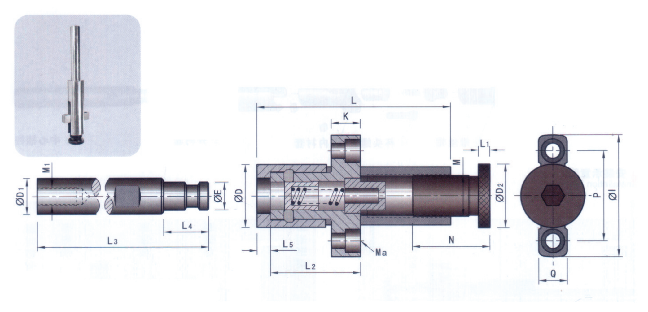 三種直徑尺寸可選,28、34、45MM,根據(jù)模胚的尺寸選擇,三種型號都有兩個行程范圍及中心桿長度可供選擇;