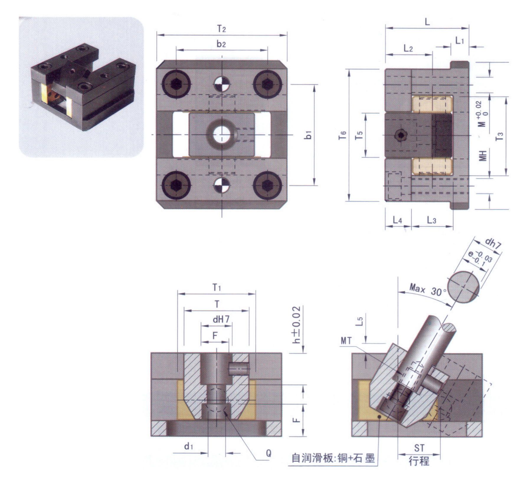 Code | Φd | h | ΦQ | Φd1 | b1 | b2 | e | F | 行程 | MT | MH |