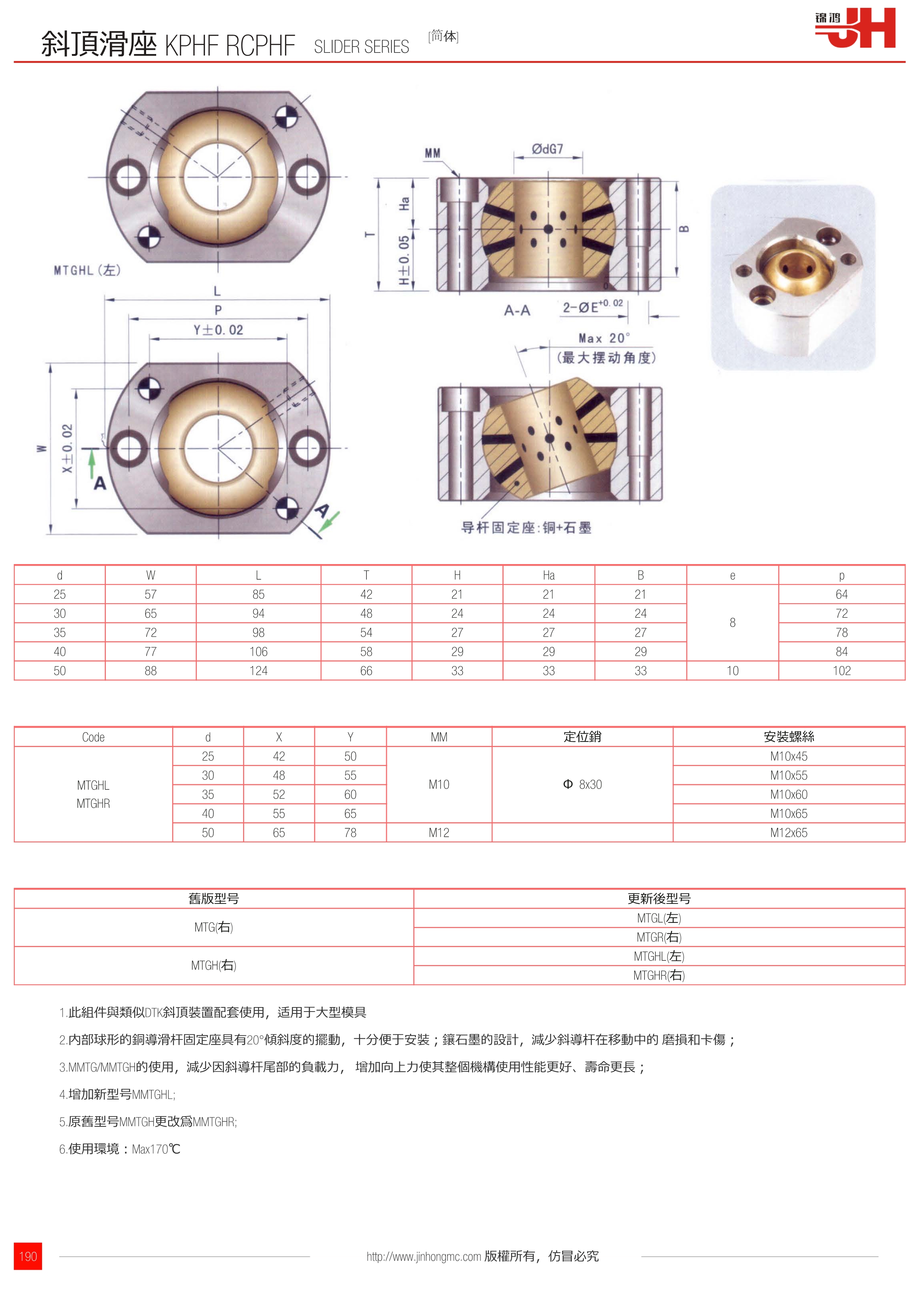 3.MMTG/MMTGH的使用,減少因斜導桿尾部的負載力, 增加向上力使其整個機構使用性能更好、壽命更長;
