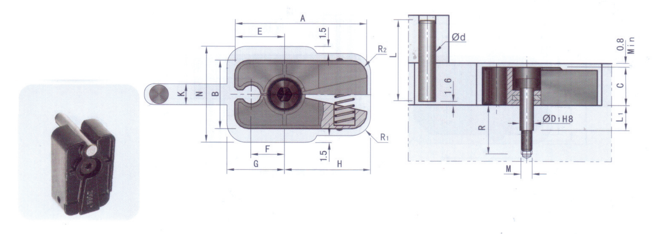 Code | D1 | L1 | R | R1 | R2 | M | 夾持力(kgf) | |
