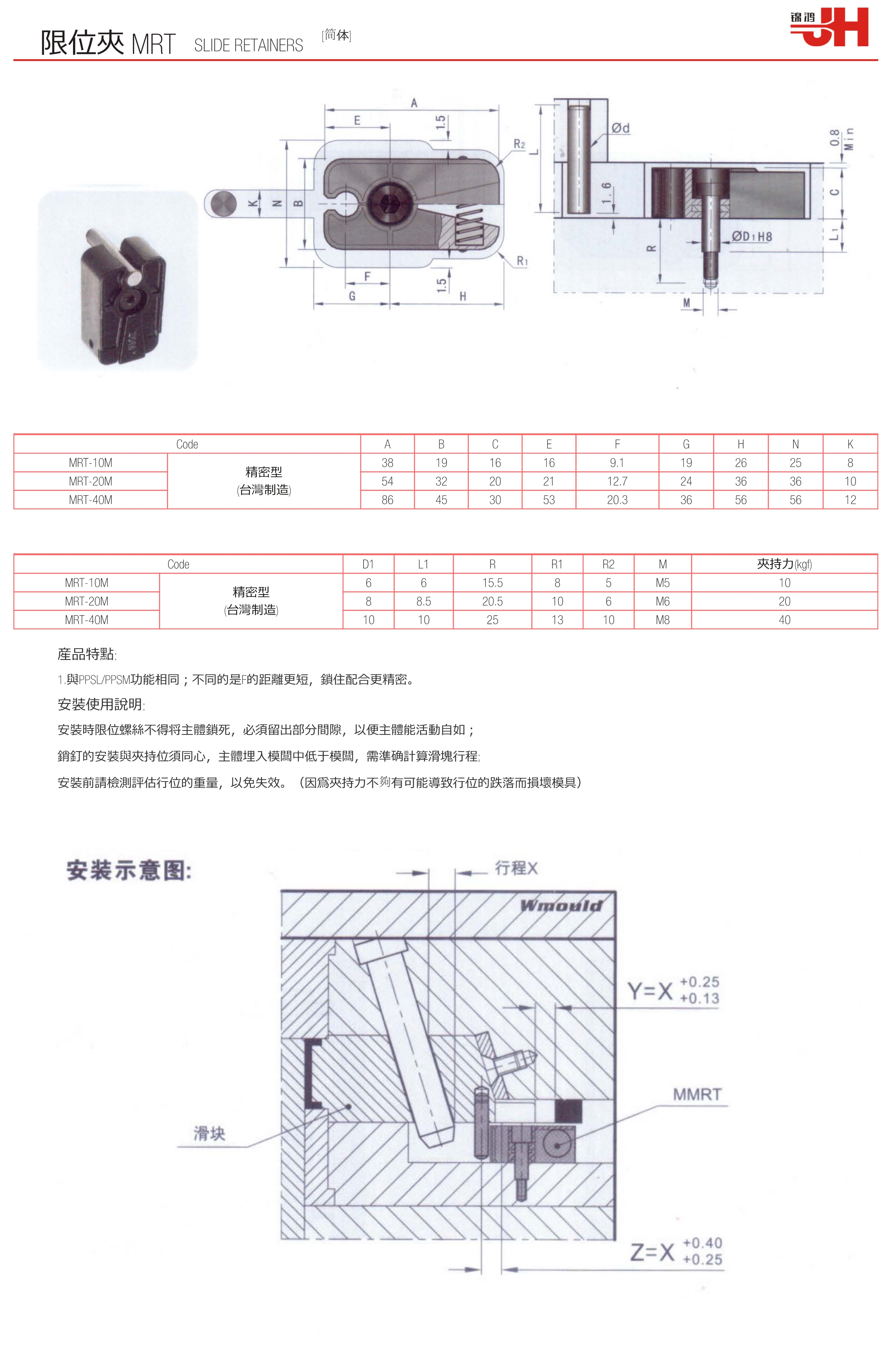 安裝前請檢測評估行位的重量,以免失效。(因為夾持力不夠有可能導致行位的跌落而損壞模具)
