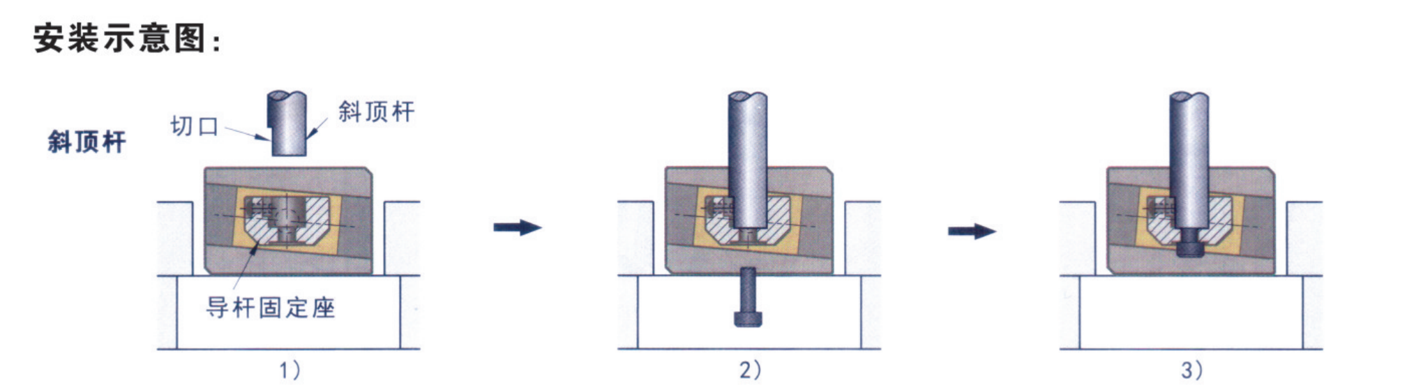 將斜頂桿的切口對齊導桿固定座的止轉面;