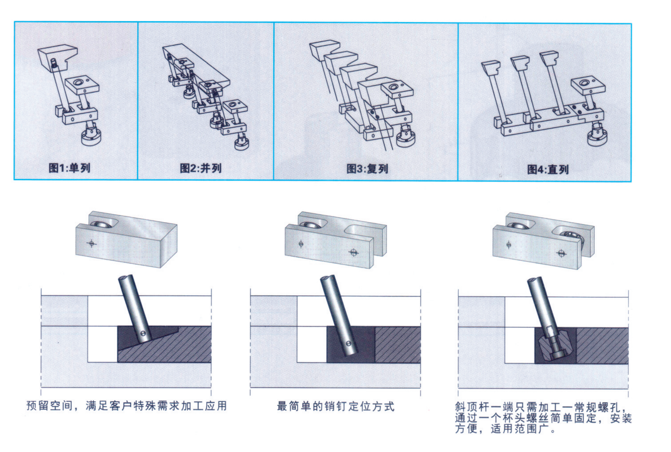 5.廣泛應用于小型精密模具及超重量級模具, 可進行單列、并列、復列、直列多種組合應用 以滿足多種模具的需求。