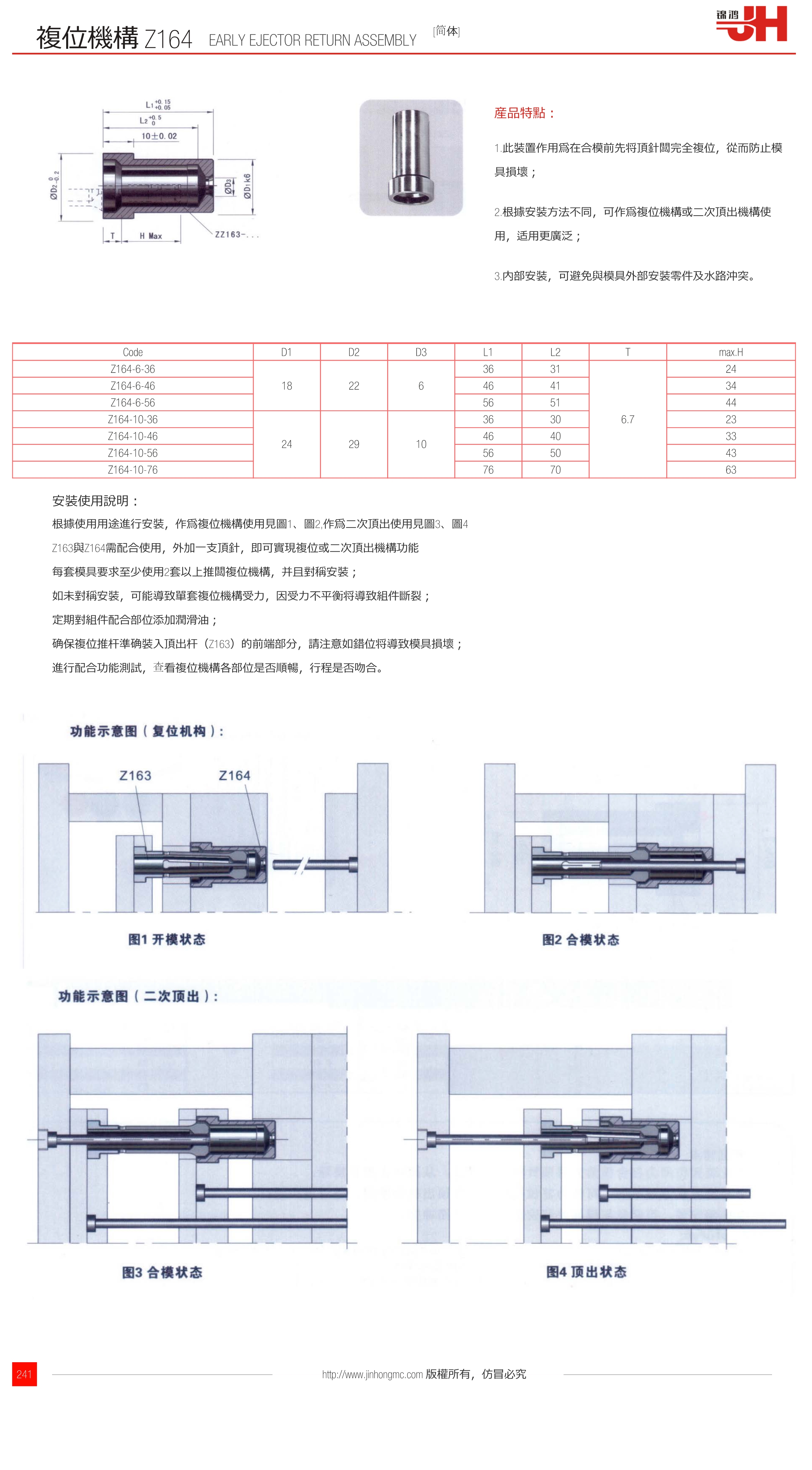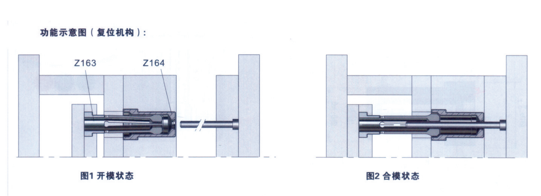 Z163與Z164需配合使用,外加一支頂針,即可實現復位或二次頂出機構功能