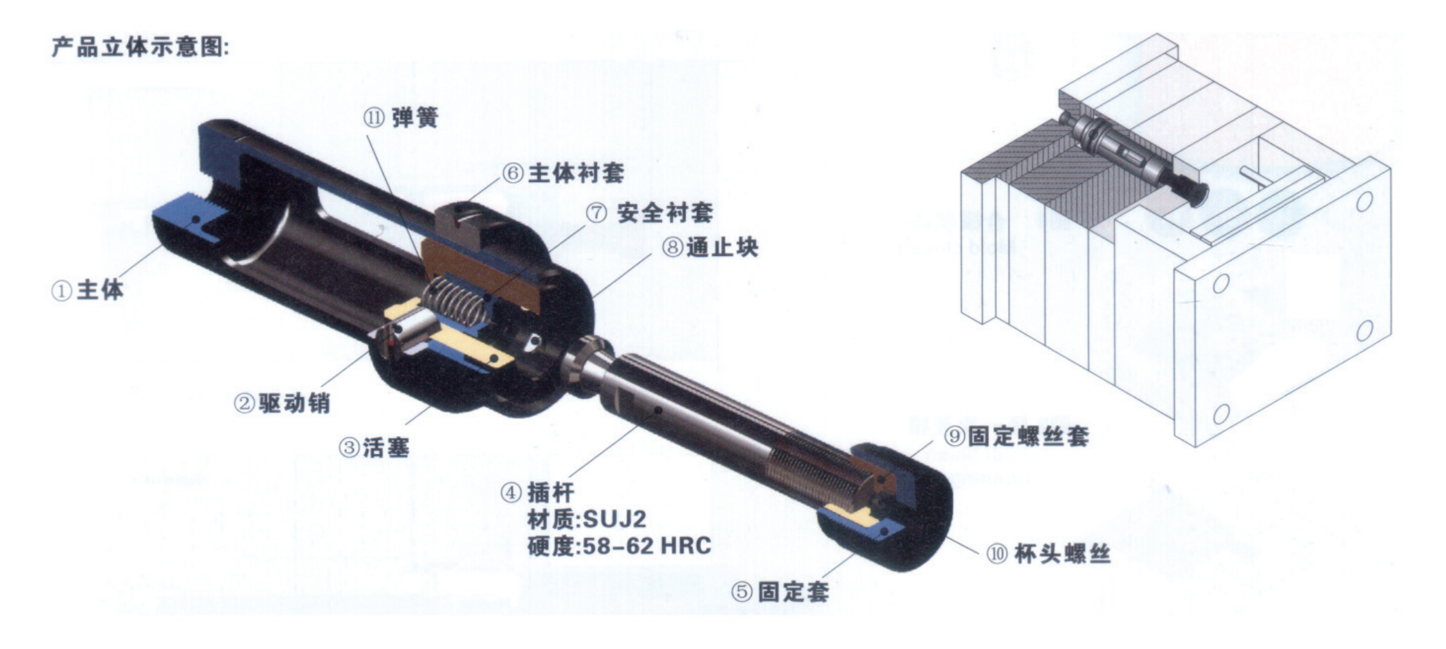 復位機構為精密零件,精準對稱安裝(同一模胚至少使用2套)根據模胚及所 需拉力大小決定數量及規格;
