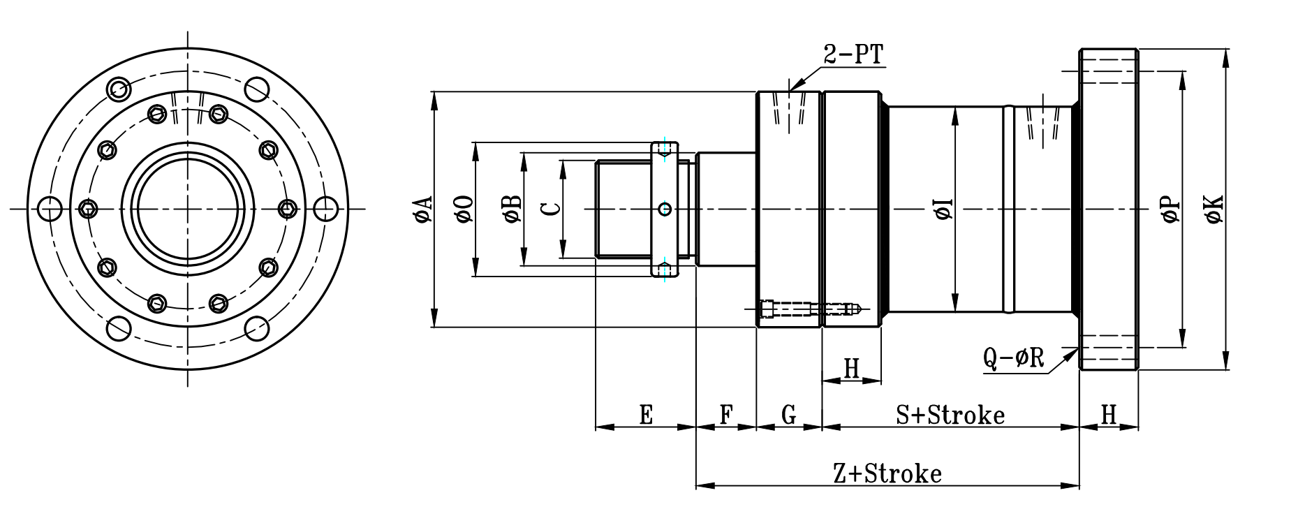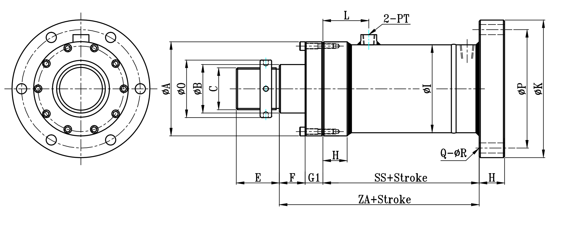 缸徑 BORE | ΦA | ΦB | C | L | H | ΦI | ΦK | ΦP | Φ0 | E | F | G | G1 | S | SS | Z | ZA | Q | ΦR | PT |