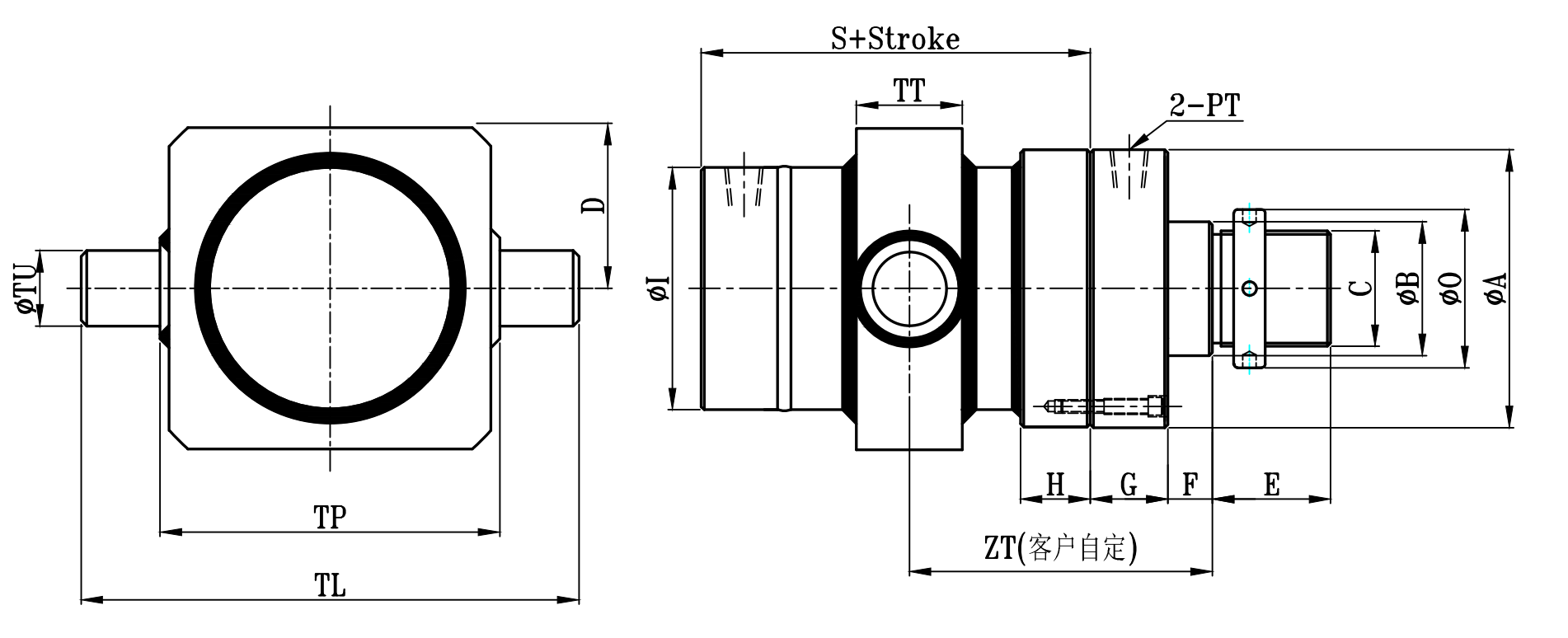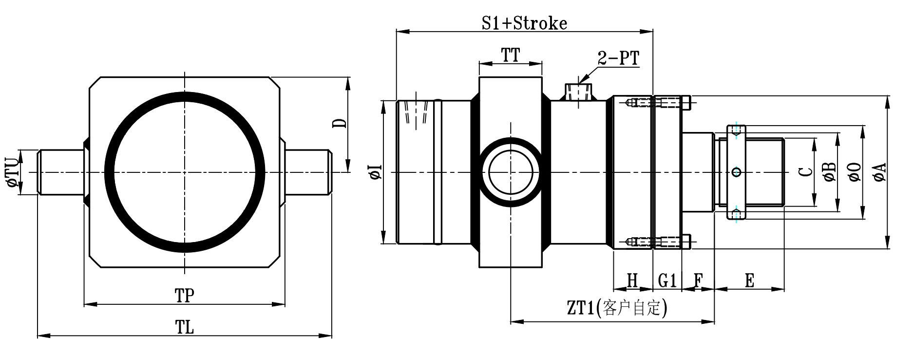 缸徑 BORE | ΦA | ΦB | C | H | ΦI | Φ0 | E | F | G | G1 | S | S1 | ΦTU | TL | TP | D | TT | PT |