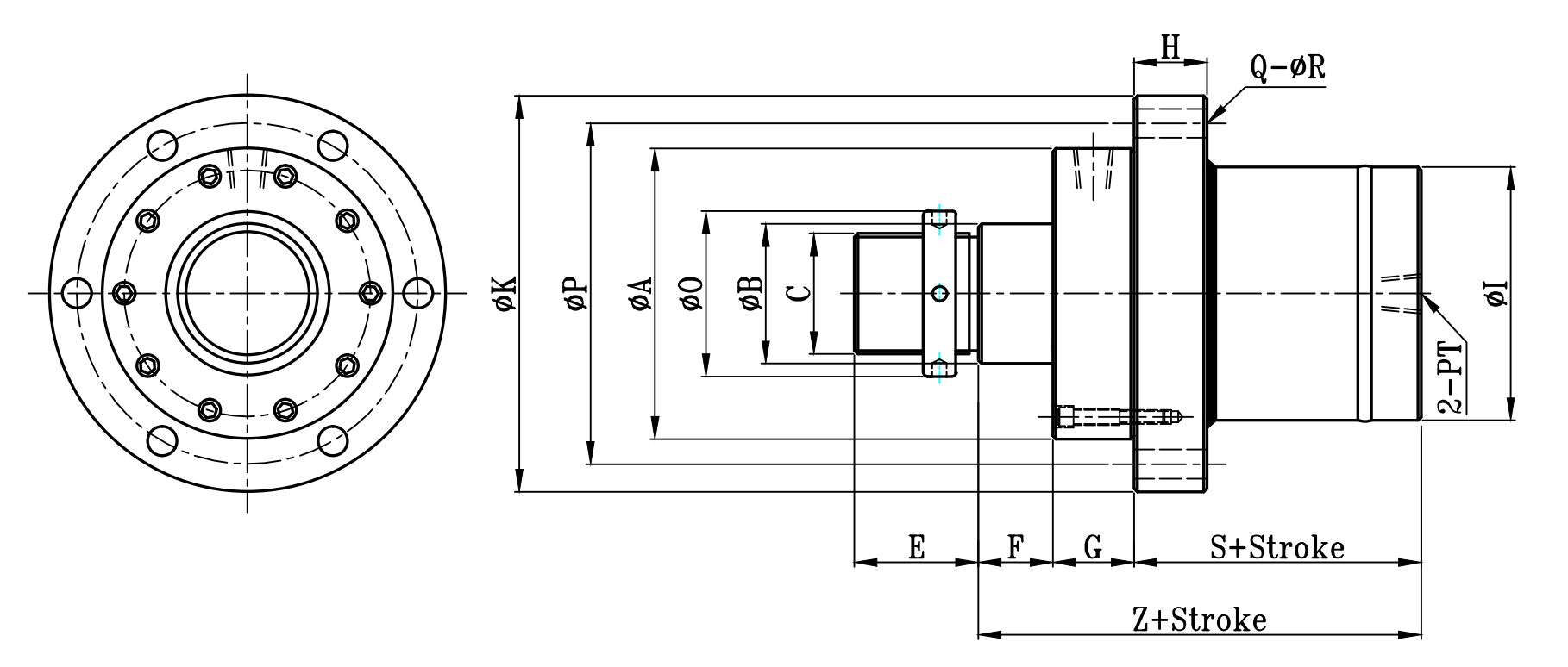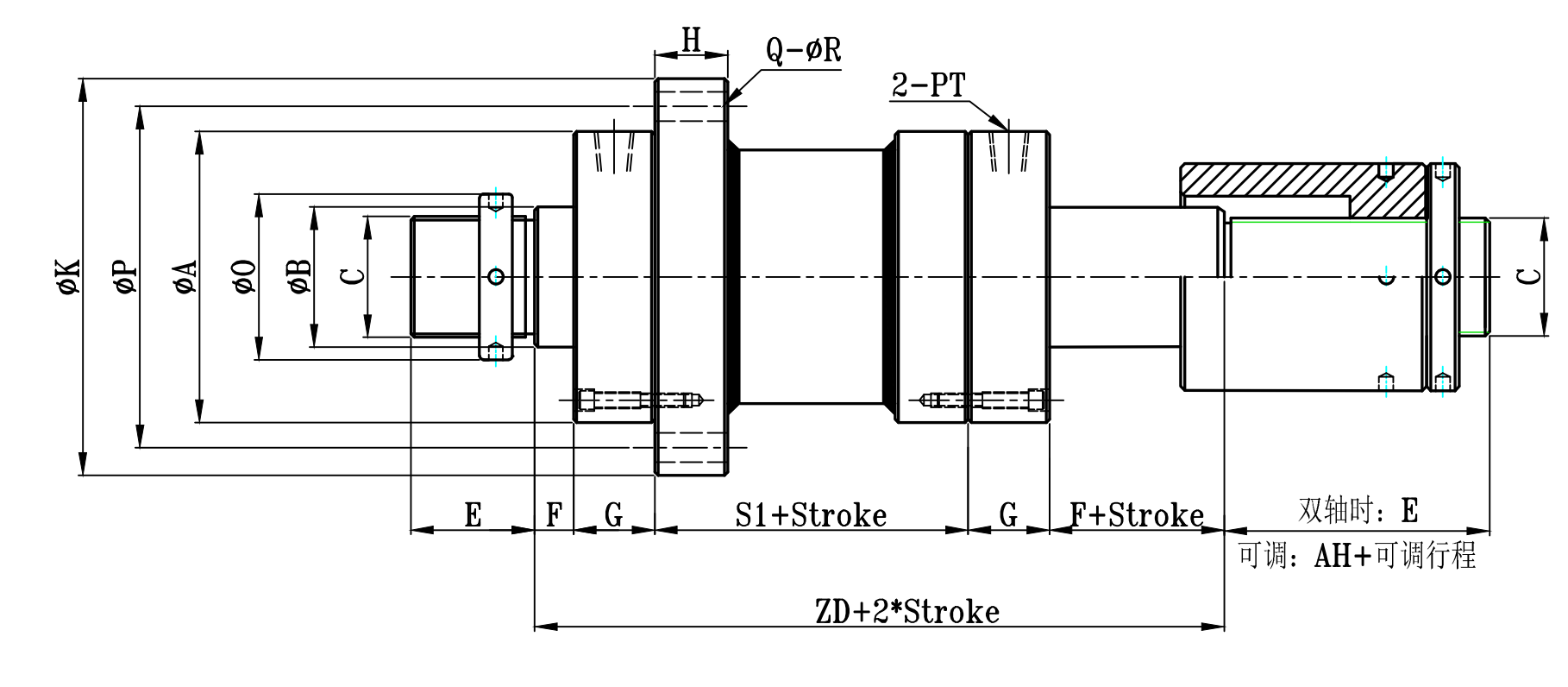 缸徑 BORE | ΦA | ΦB | C | H | ΦI | ΦK | ΦP | Φ0 | E | F | G | S | S1 | Z | ZD | AH | Q | ΦR | PT |