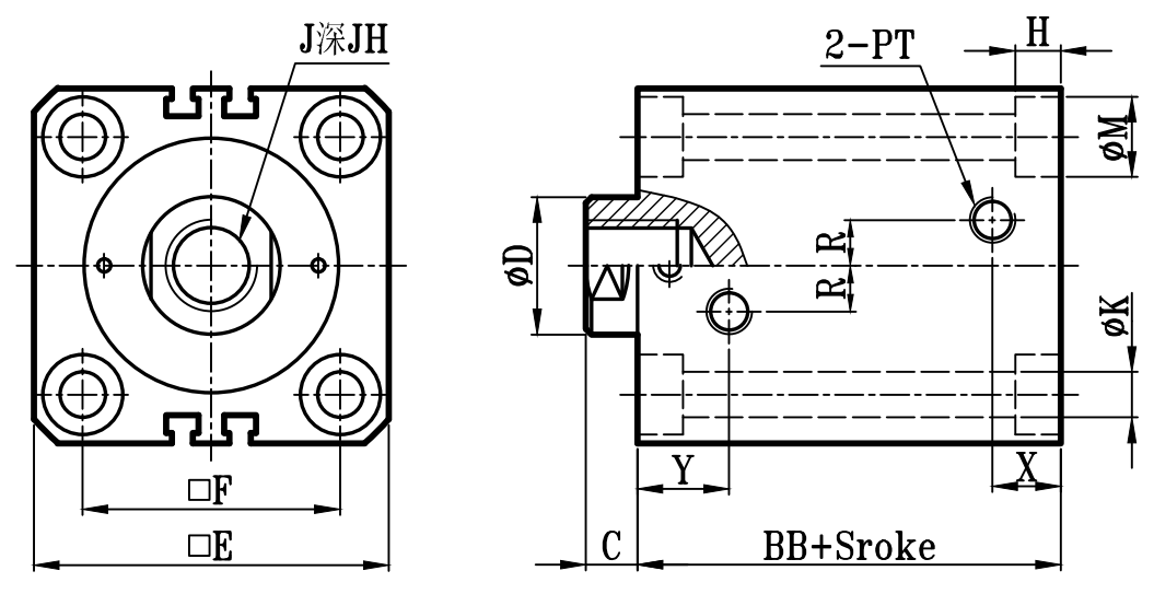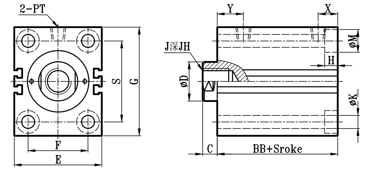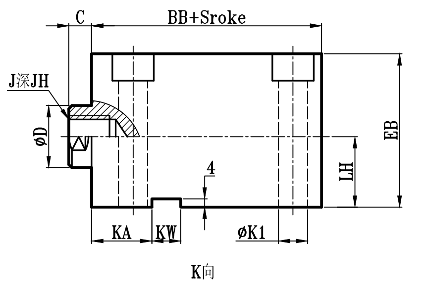 缸徑 BORE | BB | C | ΦD | EA | FA | EB | LH | Q | FB | S | G | ΦK1 | KA | KW | R1 | E | F | ΦK | ΦM | H | R | X | Y | PT | J | JH | O | OL | W | ΦV |