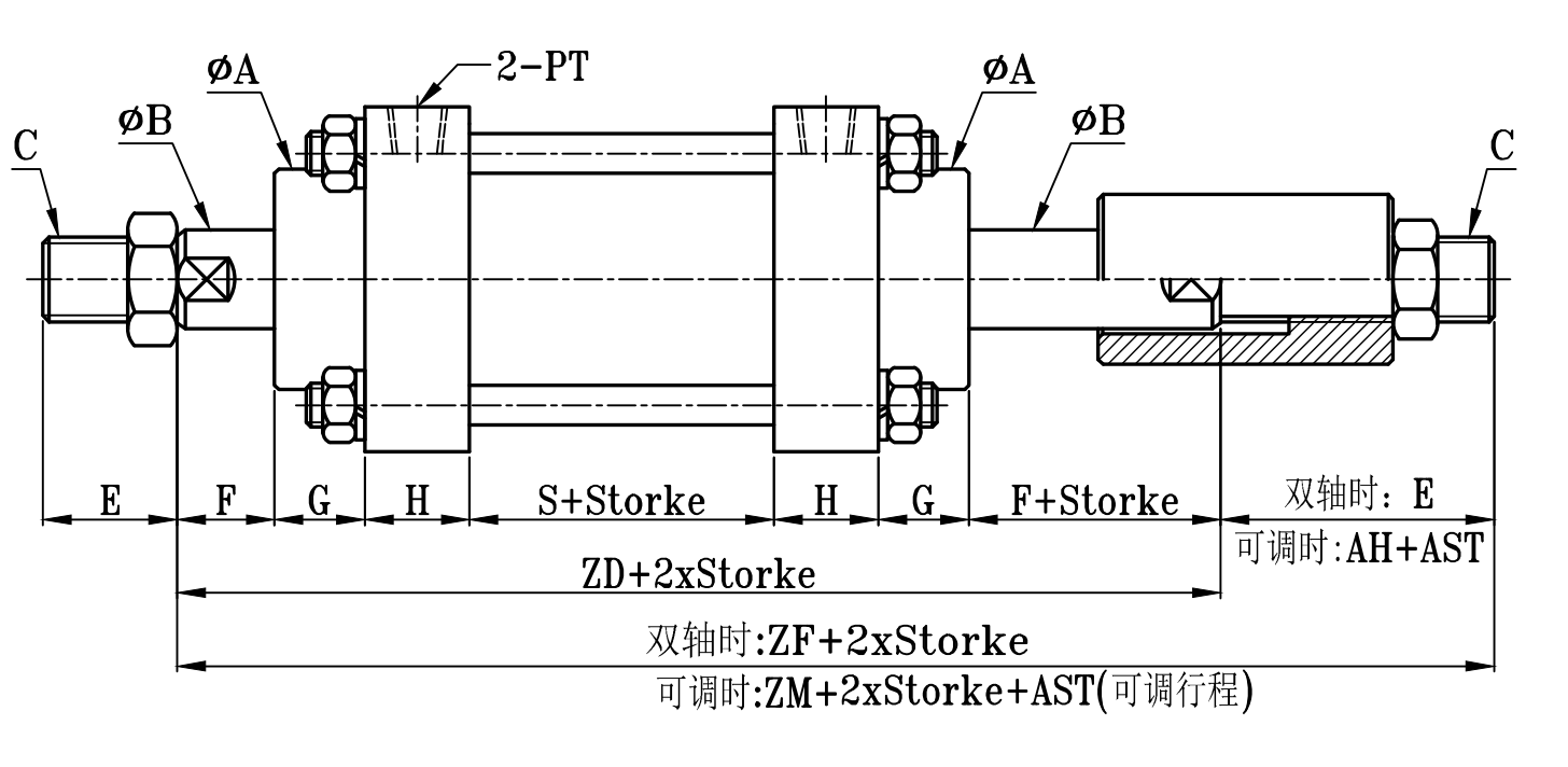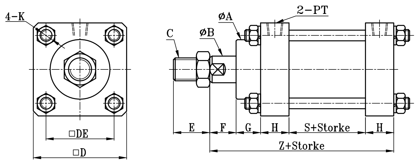 缸徑 BORE | ΦA(chǔ) | ΦB | □D | □DE | F | G | H | PT | K | S | Z | ZD | ZF | ZM | AH | C | E | J | JH | W | ΦV |