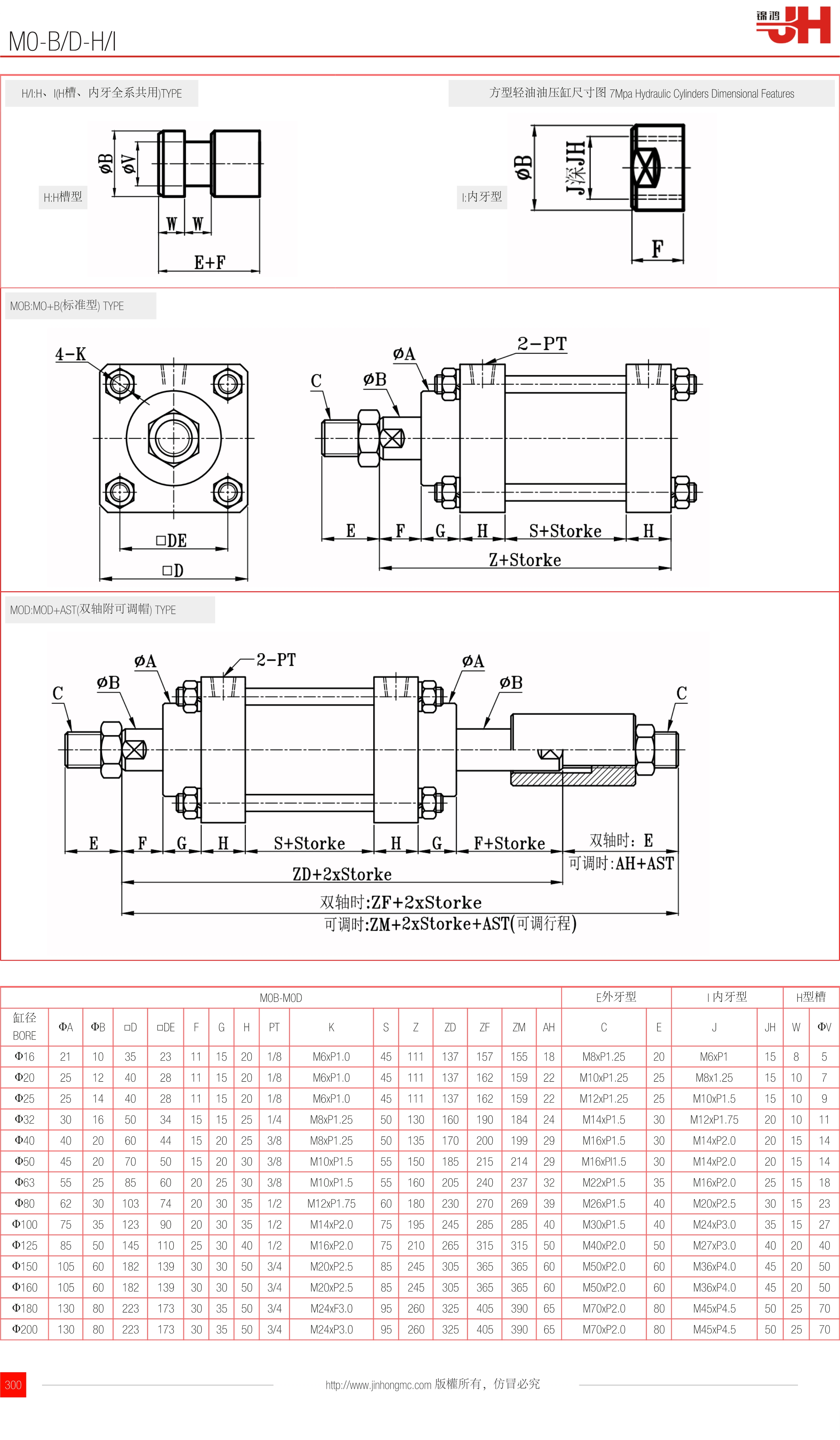 H/I:H、I(H槽、內(nèi)牙全系共用)TYPE | 方型輕油油壓缸尺寸圖 7Mpa Hydraulic Cylinders Dimensional Features |