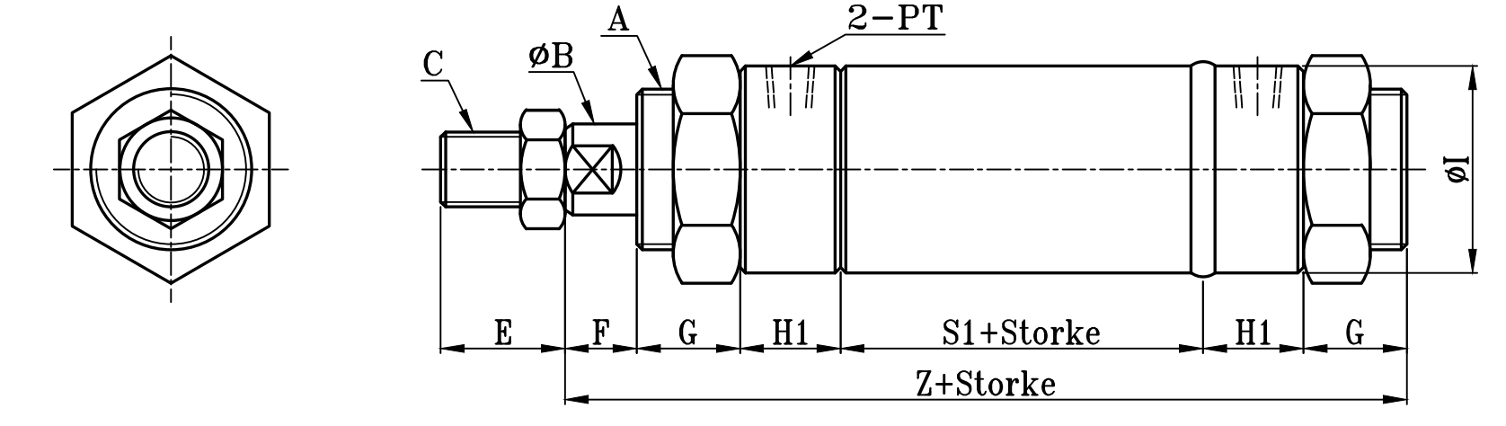 H/I:H、I(H槽、內牙全系共用)TYPE | 圓型中型油壓缸尺寸圖 14Mpa R0 Series Dimensional Features |