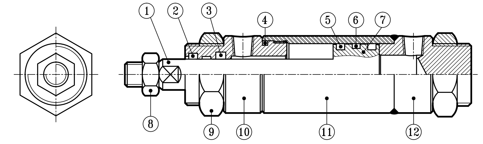 2 | 刮塵環 Dust wiper | 1 | 7 | 活塞本體 Piston | 1 | 12 | 后蓋 End cover | 1 |