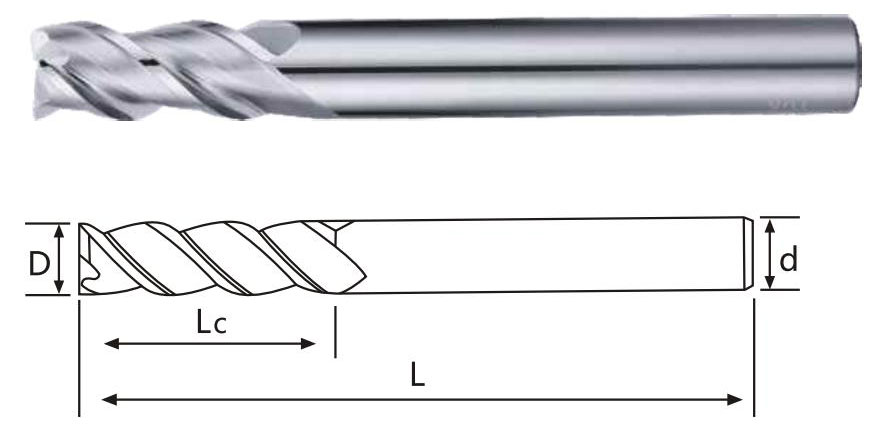商品編號 Product number | 刃徑(D) Blade diameter | 刃長(Lc) Blade length | 柄徑(d) Shank diameter | 全長(L) Overall length | 刃數 Flute |
