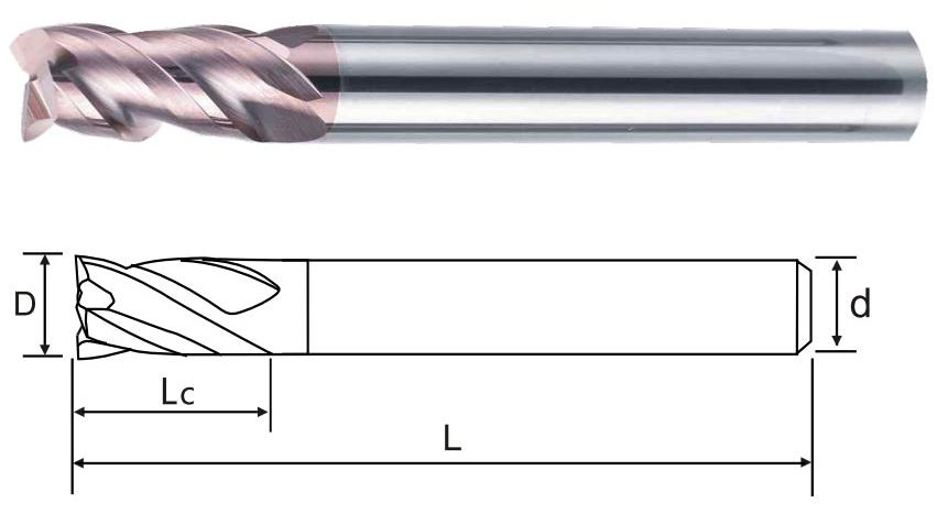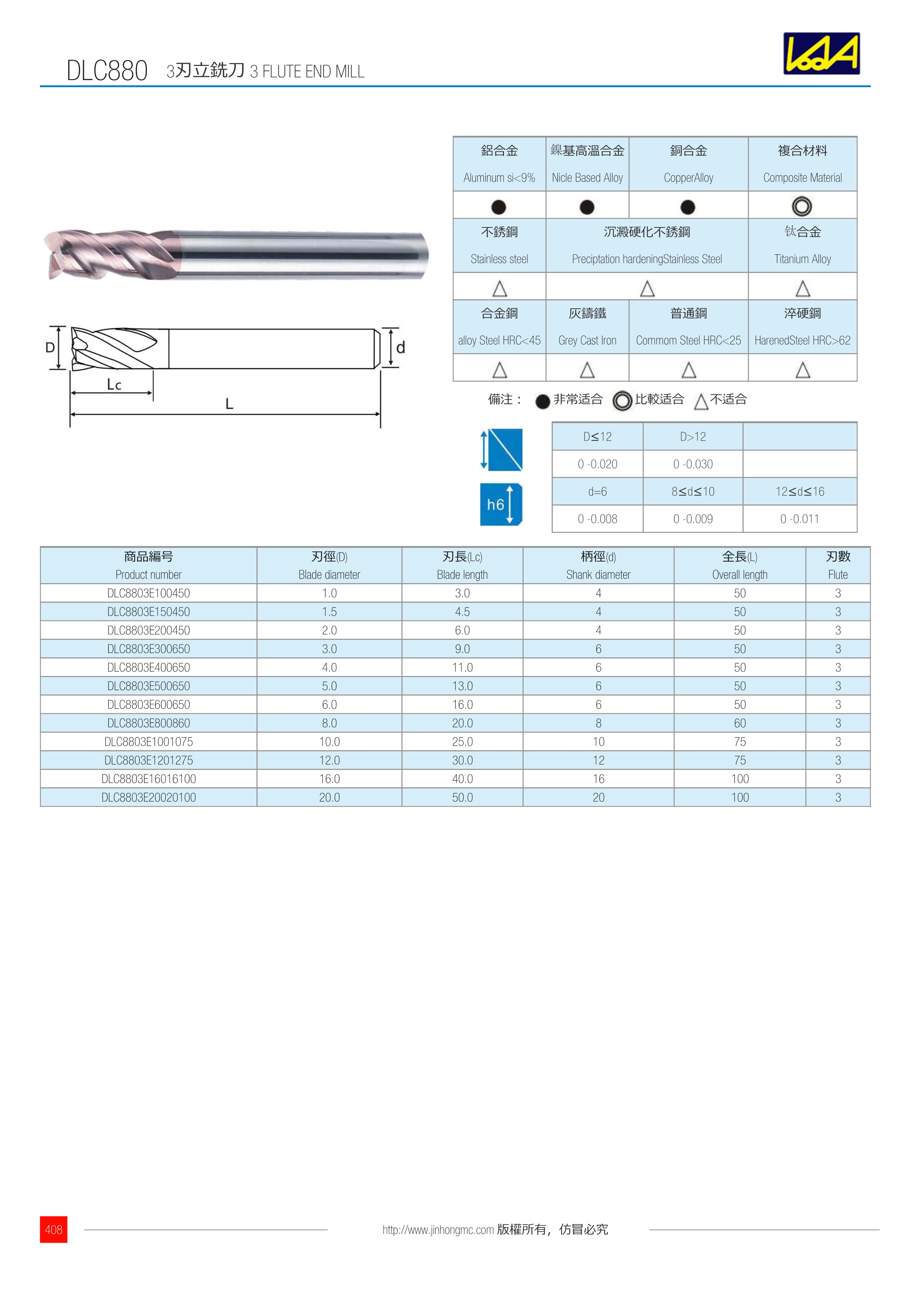 商品編號 Product number | 刃徑(D) Blade diameter | 刃長(Lc) Blade length | 柄徑(d) Shank diameter | 全長(L) Overall length | 刃數(shù) Flute |