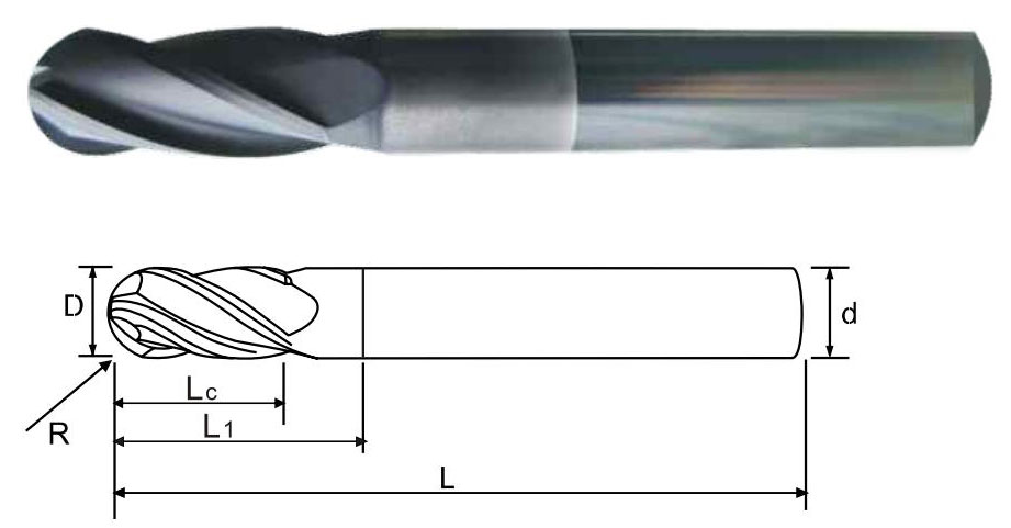 商品編號 Product number | 半徑(R) Radius of R | 刃徑(D) Blade diameter | 刃長(Lc) Blade length | 有效長(L1) Effective long | 柄徑(d) Shank diameter | 全長(L) Overall length | 刃數(shù) Flute |