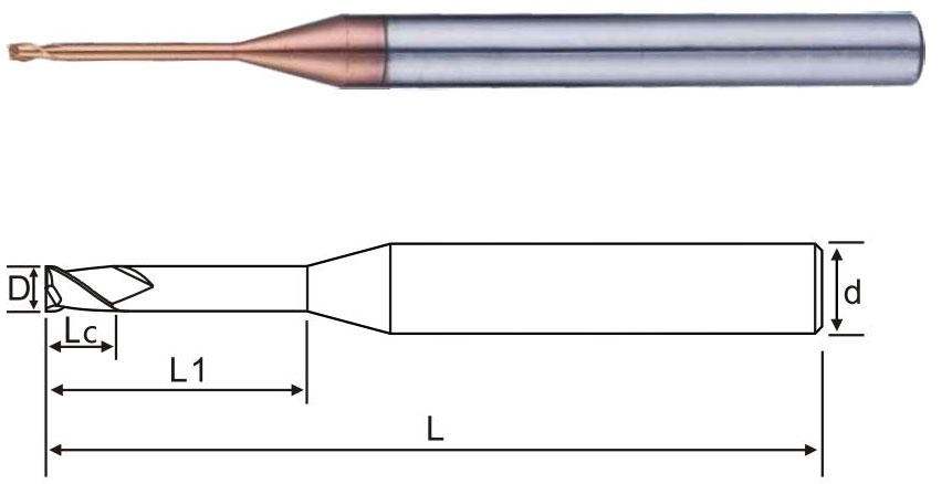 商品編號 Product number | 刃徑(D) Blade diameter | 刃長(Lc) Blade length | 有效長(L1) Effective long | 柄徑(d) Shank diameter | 全長(L) Overall length | 刃數 Flute |