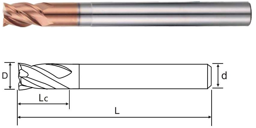 商品編號 Product number | 刃徑(D) Blade diameter | 刃長(Lc) Blade length | 柄徑(d) Shank diameter | 全長(L) Overall length | 刃數(shù) Flute |