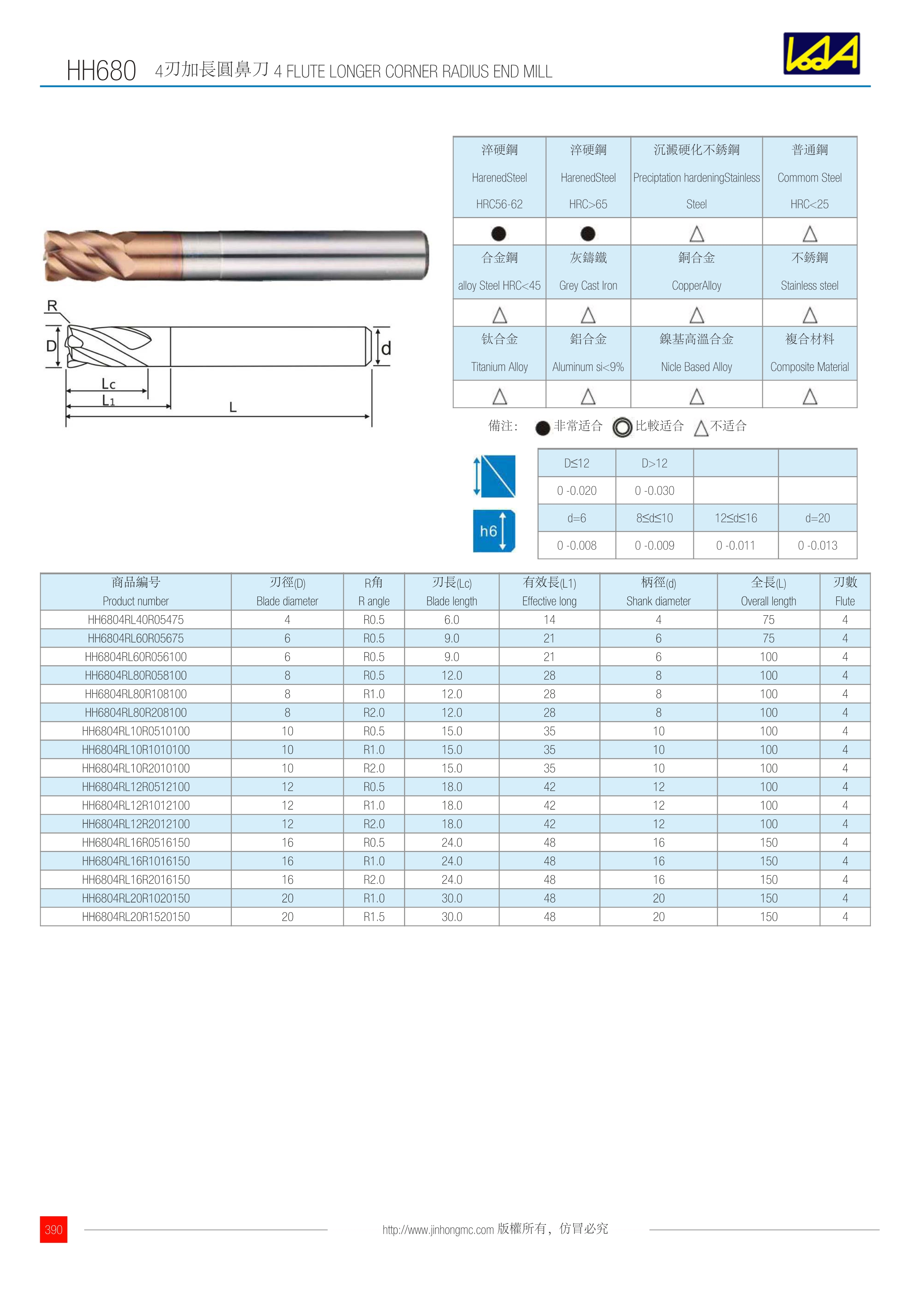合金鋼 alloy Steel HRC<45 | 灰鑄鐵 Grey Cast Iron | 銅合金 CopperAlloy | 不銹鋼 Stainless steel |