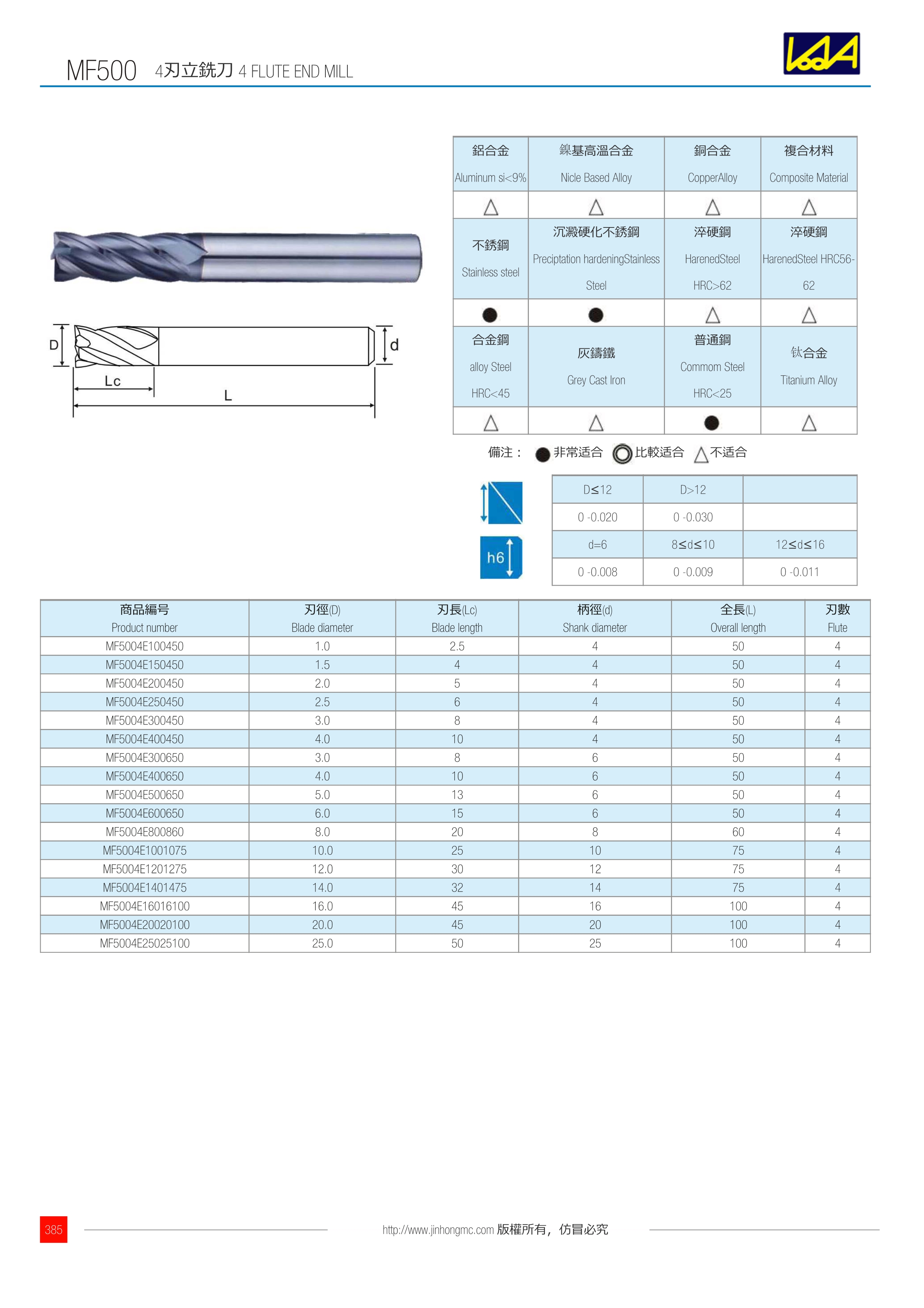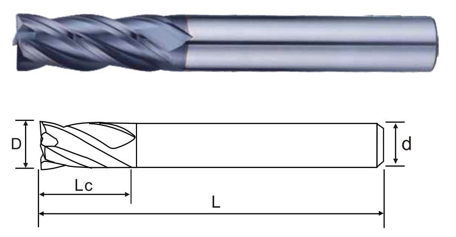 商品編號 Product number | 刃徑(D) Blade diameter | 刃長(Lc) Blade length | 柄徑(d) Shank diameter | 全長(L) Overall length | 刃數(shù) Flute |