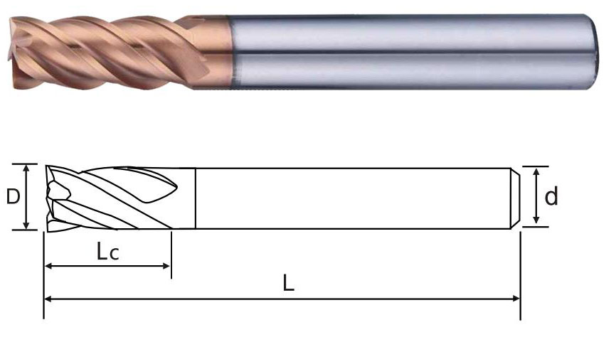 商品編號 Product number | 刃徑(D) Blade diameter | 刃長(Lc) Blade length | 柄徑(d) Shank diameter | 全長(L) Overall length | 刃數 Flute |