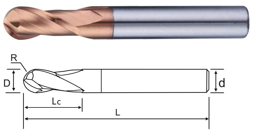 商品編號 Product number | 半徑(R) Radius of R | 刃徑(D) Blade diameter | 刃長(Lc) Blade length | 柄徑(d) Shank diameter | 全長(L) Overall length | 刃數(shù) Flute |