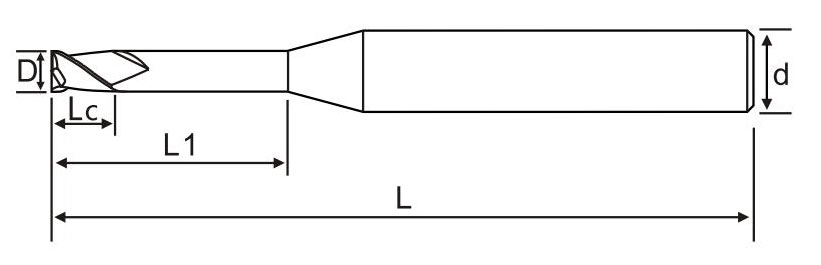 商品編號 Product number | 刃徑(D) Blade diameter | 刃長(Lc) Blade length | 有效長(L1) Effective long | 柄徑(d) Shank diameter | 全長(L) Overall length | 刃數 Flute |