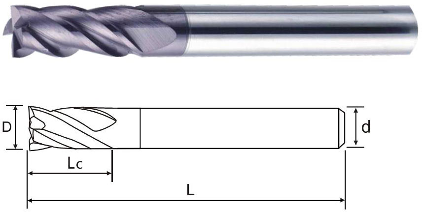 商品編號 Product number | 刃徑(D) Blade diameter | 刃長(Lc) Blade length | 柄徑(d) Shank diameter | 全長(L) Overall length | 刃數(shù) Flute |