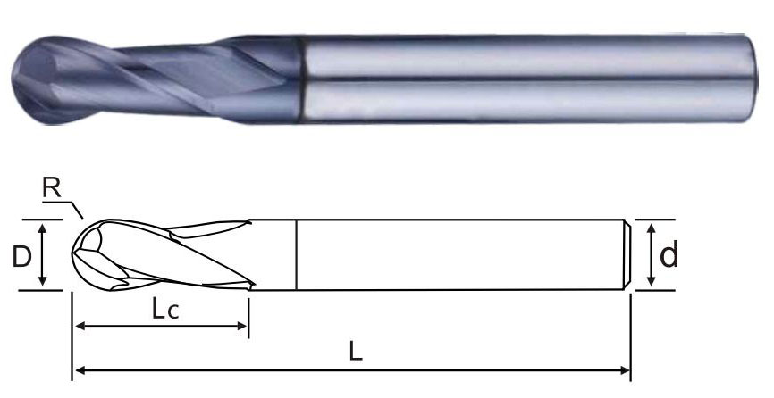 商品編號 Product number | 半徑(R) Radius of R | 刃徑(D) Blade diameter | 刃長(Lc) Blade length | 柄徑(d) Shank diameter | 全長(L) Overall length | 刃數 Flute |